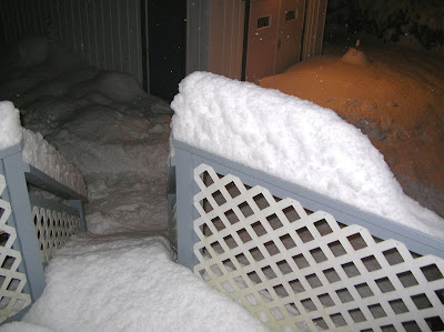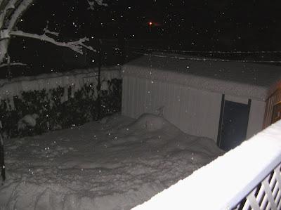 We have been living within the grip of winter for over 3 weeks now. Usually when it snows here, it lasts for a couple of days, melts, and we return to the rain we are used to. That has not been the case this winter. We have had snow storm after snowstorm with no break in between. This morning, we awoke to the greatest snow accumulation we have experienced this winter. These pictures were taken of our yard last night during the snow storm. By the way, the good looking young man in these pictures is my son. 🙂