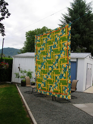 I finished piecing my Daffodil BQ2 on Friday night. The pattern does not suggest borders. However, I just can’t leave a quilt without borders. To me a quilt without borders seems unfinished. I guess I am just not a borderless kind of gal.