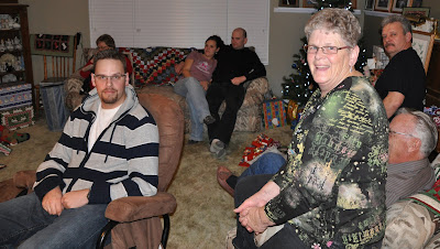 Once the gift unwrapping started, the paper quickly piled up in the center of the room.