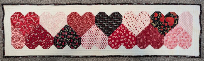 I opted to make my table runner with 12 full hearts and 2 half hearts which gave me a table runner that finished at 14″ x 52″.