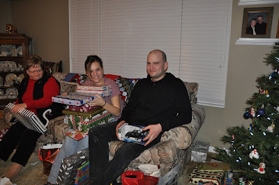 This is my son, his girlfriend and my daughter sitting on the couch at the beginning of the present opening phase of the morning.