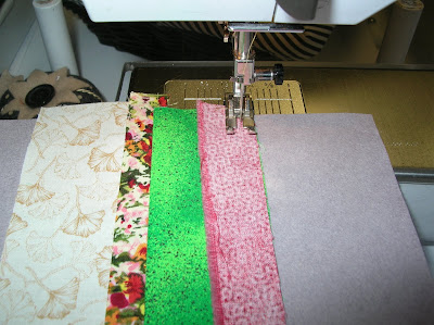 This is an excellent technique to use up fabric and thread that would otherwise be headed for the trash. This is also a technique that is a little “mindless” and works for those evenings that I am too tired to concentrate but when I still have a “need” to piece or sew.