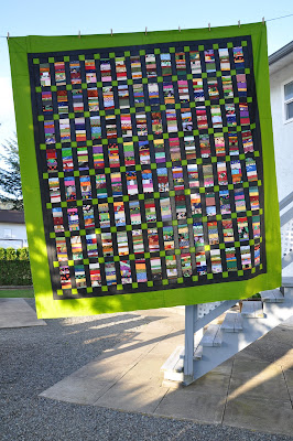 I now launder all my quilts with this wonderful product to keep dyes from bleeding or running onto other fabrics in my quilts. I have also started using these sheets in some of my regular laundry loads and I just love them. However, I started to accumulate a stack of used color catcher sheets that I couldn’t bear to throw away. What do you do with all those used sheets once they have trapped all that loose dye? I use them as foundations for string pieced blocks.