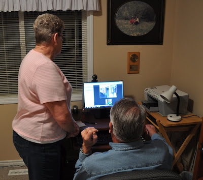 Our daughter and son-in-law came over to visit with us tonight. They had just received their wedding photos back from the photographer and could hardly wait to share them with us. When our DD and SIL visit, Sarge also comes along. This is a picture of Sarge in his trick or treat costume–dressed as Frankenstein or Frankendog. This picture doesn’t make Sarge look too happy. He is tolerant of most of the costume ; he just doesn’t like his ears covered.